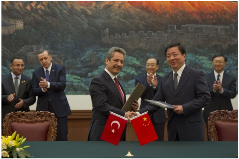 2012年,溫家寶同志和埃爾多安出席中國外文局與恰勒克集團合作協議簽字儀式
