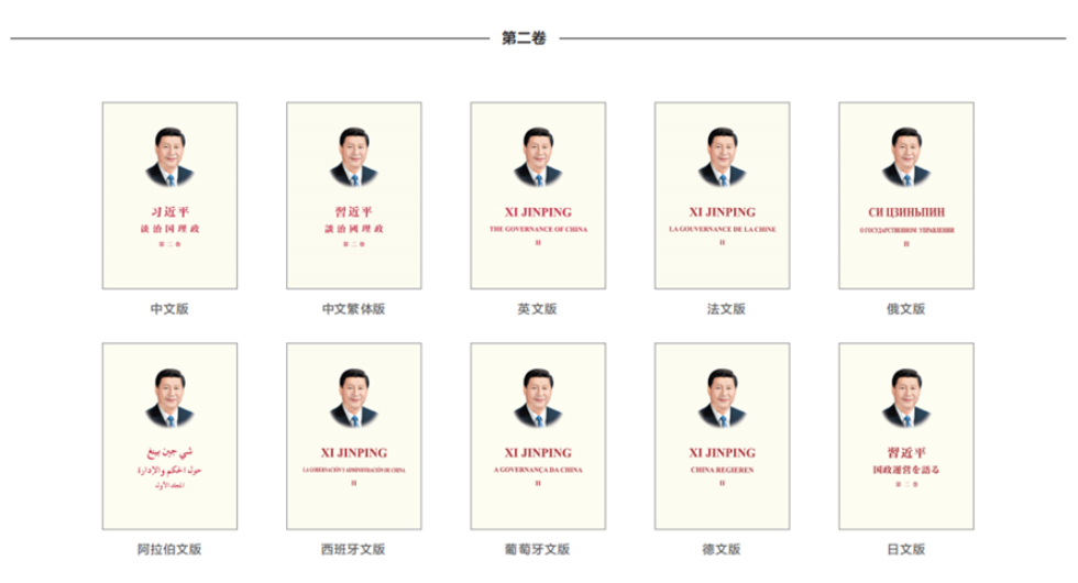 截至 2019年8月,《習近平談治國理政》已出版28個語種、32個版本,海外發行覆蓋160多個國家和地區,成為國際社會讀懂中國的權威讀本