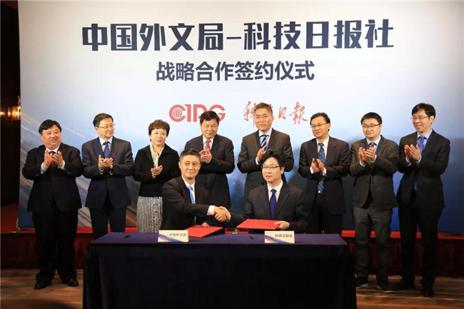 ▲中國外文局與科技日報社簽署戰略合作協議。