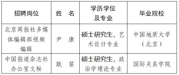 中國外文局所屬北京周報社、中國報道雜志社2020年公開招聘擬聘用人員公示