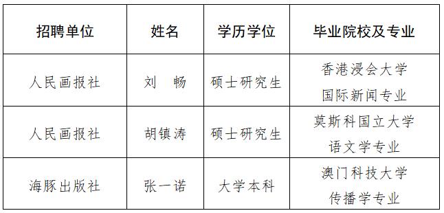 根據有關規定和《中國外文出版發行事業局所屬企事業單位2021年海外留學生招聘簡章》,現將中國外文局人民畫報社、海豚出版社2021年度擬接收海外留學生予以公示。公示期間,如有問題,請向中國外文局反映。