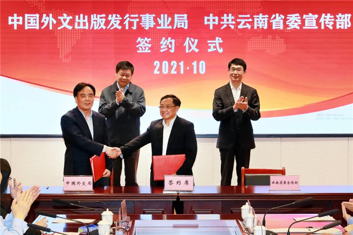 隨后,陸彩榮與云南省委宣傳部副部長、省政府新聞辦主任彭斌分別在協議書上簽字,標志著雙方合作進入深度融合、協作共贏的新階段。根據協議,雙方將在國際傳播、文化交流、南亞東南亞區域國際傳播中心建設、輿情研究等方面不斷深化務實合作,譜寫好中國夢的云南篇章。同時,充分利用云南獨特的區位優勢和豐富的國際傳播資源,提升中國外文局服務國家重大戰略的綜合實力和水平。