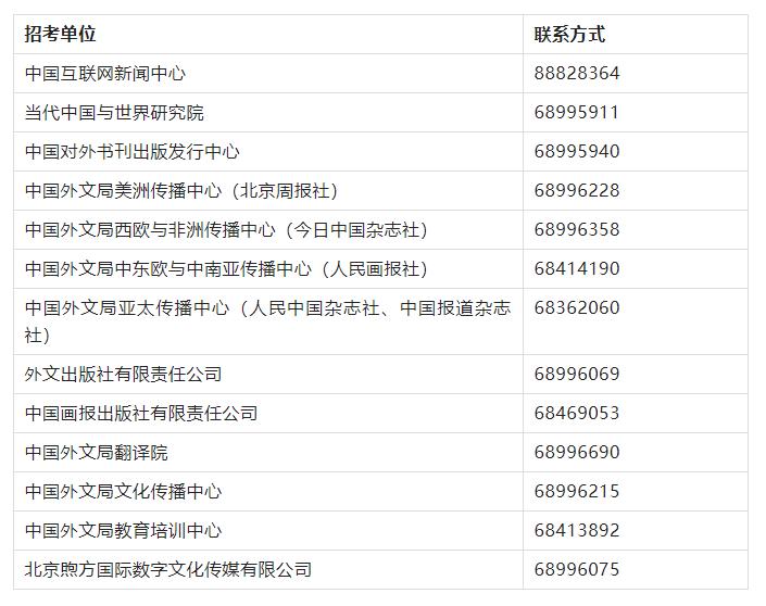 此次招聘涉及67個崗位、計劃招聘75人,具體崗位及資格條件詳見《中國外文出版發行事業局所屬企事業單位2022年度公開招聘崗位信息表》。其中,有關崗位專業條件參考教育部公布的專業目錄(《普通高等學校本科專業目錄》和《授予博士、碩士學位和培養研究生的學科、專業目錄》)。報名應聘人員在報名時對專業有任何疑問的,可以直接撥打各用人單位電話進行咨詢了解。