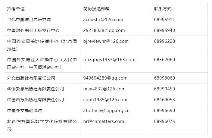 (三)各用人單位聯系方式附后。監督電話:010-68996205。