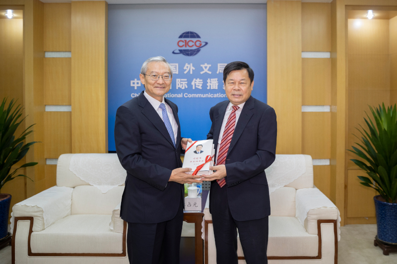 杜占元向張明贈送《習近平談治國理政》第四卷中英文版