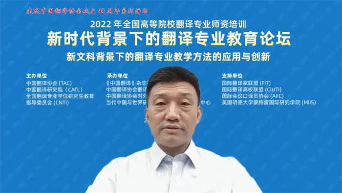 開幕式后,與會專家圍繞“新文科背景下的翻譯專業教學方法的應用與創新”主題展開研討。本次論壇是2022年全國高等院校翻譯專業師資培訓的重要活動。論壇將圍繞“新文科背景下的翻譯專業教學方法的應用與創新”、“新文科背景下的翻譯教學管理模式的創新與人才培養”、“新文科背景下的翻譯教學技術的創新與挑戰”等三個主題分別于8月13、14、20日開展三場專題研討,旨在提升翻譯專業師資隊伍水平,推動翻譯專業教育內涵式高質量發展,加快培養國家急需、德才兼備的高層次專業化復合型翻譯人才。