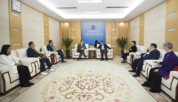4月25日,中國外文局局長、首屆蘭花獎評委會主任委員杜占元會見到訪的蘭花獎外籍評委一行。中國外文局副總編輯、國際傳播發展中心主任、首屆蘭花獎評委會秘書長陳實出席會見。