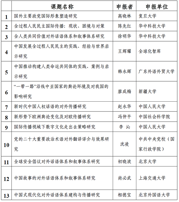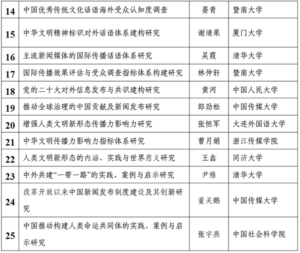 2023年度中國外文局國際傳播能力建設研究協調機制課題招標工作已結束,中國外文局所屬當代中國與世界研究院完成全部評審工作,中標課題共25個?,F將中標結果公示如下,公示期為2023年5月9日至5月13日。