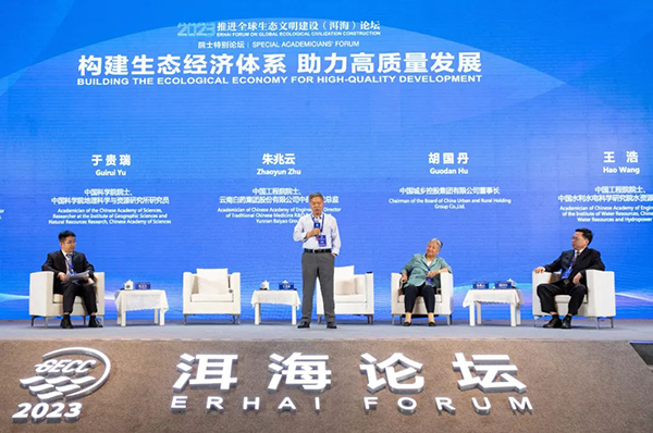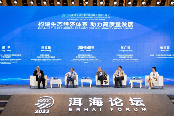 5月28日,2023推進全球生態文明建設(洱海)論壇院士特別論壇在云南大理舉行。來自特色農業、生態經濟等相關領域的院士、專家學者、領軍人物等圍繞“打造生態經濟體系的產業基石”“高值產業的生態化發展”兩個議題展開交流,共同探討如何緊抓“生態經濟體系”“高質量發展”兩個關鍵詞,構建人與自然和諧共生的中國式現代化,展示豐富多彩、生動立體的生態中國形象,通過“院士力量”為生態經濟助力高質量發展建言獻策。