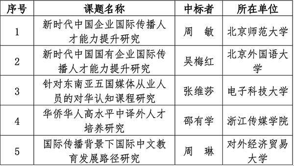 2023年中國外文局教育培訓中心國際傳播研修基地建設課題招標工作已結束,中國外文局教育培訓中心完成全部評審工作,中標課題共5個?,F將中標結果公示如下,公示期為2023年5月30日至6月5日。