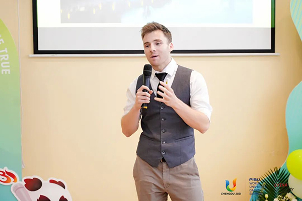在他看來,中國人有一種團結力量、全民參與的熱情和氛圍,這尤其體現在中國舉辦的各種賽事中,此次大運會也是如此。他還參與過很多次志愿者活動,他曾到四川山區支教,與當地小朋友們交流,教他們英語和體育。他希望通過自己的努力參與到中國的發展中,以志愿者身份貢獻自己的一份力量。