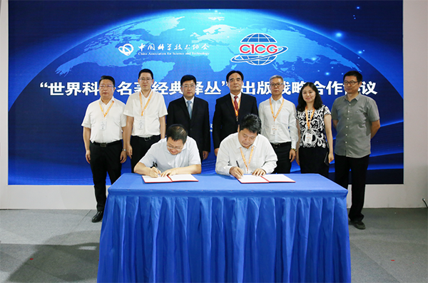 6月15日,中國科學技術出版社有限公司與華語教學出版社在中國外文局展臺簽訂“世界科普名著經典譯叢”出版戰略合作協議。中國科學技術協會書記處書記王進展、中國外文局副局長陸彩榮出席儀式并致辭。