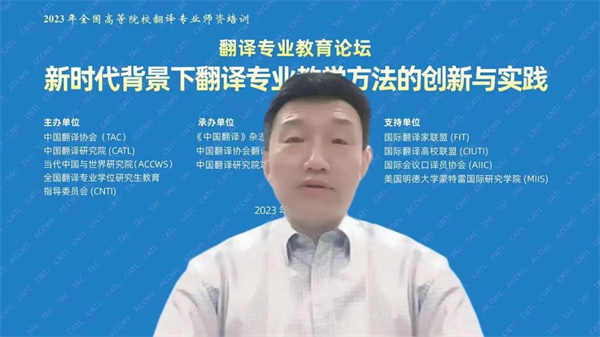 本次論壇是2023年全國高等院校翻譯專業師資培訓的重要活動,共圍繞“新時代背景下翻譯專業教學方法的創新與實踐”“新時代背景下翻譯專業教育管理模式的創新與人才培養”“新時代背景下翻譯專業教學技術的融合與創新”等三個主題,分別于8月12日、13日、19日開展三場專題研討,旨在提升翻譯專業師資隊伍水平,推動翻譯專業教育高質量發展,加快培養國家急需、德才兼備的高層次專業化復合型翻譯人才。