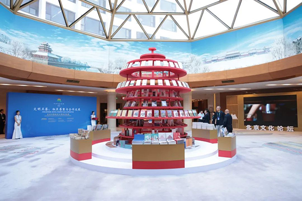 論壇設置圖書展和視頻展。圖書展展臺以天壇為主形象,展示了領袖著作、文化名著、北京主題等多語種圖書。短視頻展播放以文化為主題的世界故事,生動展現最新最美最好的中國形象和首都面貌。