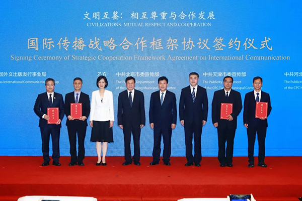 論壇期間,中國外文局與中共北京市委宣傳部、中共天津市委宣傳部、中共河北省委宣傳部舉行國際傳播戰略合作框架協議的簽約儀式,旨在充分發揮各自優勢,加強國際傳播協同協作,提升國際傳播效能,共同對外講好中國故事、傳播好中國聲音。