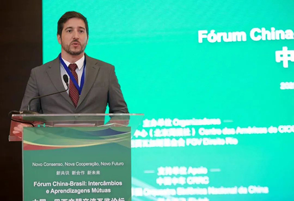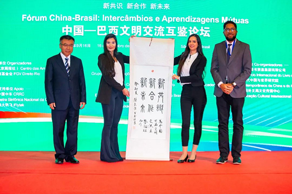 當地時間9月16日,第二屆中國—巴西文明交流互鑒論壇在巴西圣保羅舉行。論壇主題為“新共識、新合作、新未來”。中國外文局副局長劉大為、巴西文化部國際事務特別顧問總協調員維尼修斯·古特勒·羅薩出席論壇并致辭,中國政府拉美事務特別代表邱小琪、中國駐巴西大使祝青橋、巴西駐華大使高望發表視頻致辭。中國中車董事長孫永才、中國美術館館長吳為山、巴西瓦加斯基金會法學院國際交流部主任羅德里戈·維安那作大會發言。中國駐圣保羅副總領事田玉震等中巴政府、智庫、媒體、青年代表約100人出席活動。