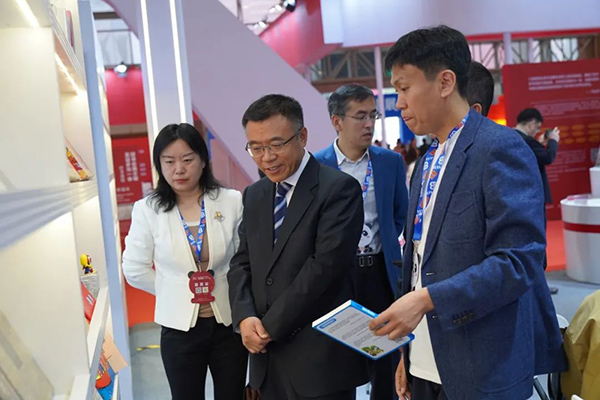 黃強(右二)到中國外文局展區視察,劉大為(右三)陪同