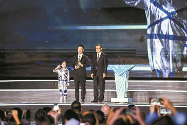 當晚,現場將這項榮譽頒發給海漄的,正是2015年憑借《三體》獲得“最佳長篇小說”的中國首位雨果獎得主劉慈欣。