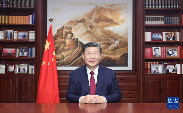 新年前夕,國家主席習近平通過中央廣播電視總臺和互聯網,發表二〇二四年新年賀詞。(新華社記者 鞠鵬 攝)