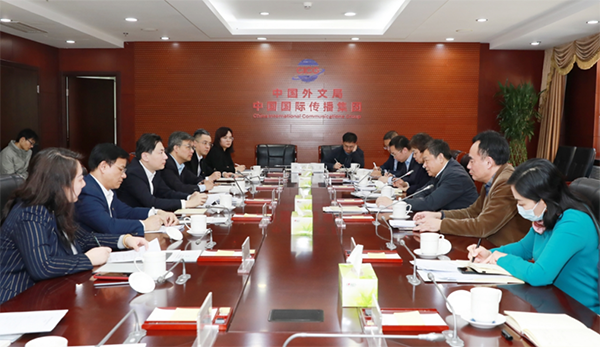 1月9日,中國外文局局長杜占元會見到訪的保利集團總經理助理、保利文化集團黨委書記、董事長王波一行,就加強雙方合作進行交流。副局長陸彩榮,局副總編輯、國際傳播發展中心主任陳實,局國際合作部負責同志等參加會見。