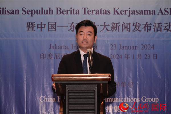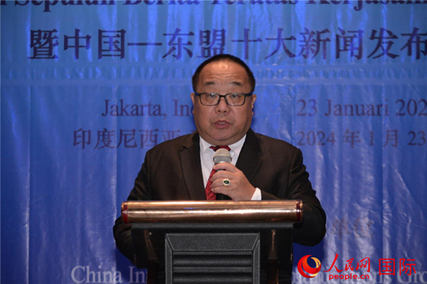 郭延軍發布“2023年中國—東盟十大新聞”。人民網記者 曹師韻攝