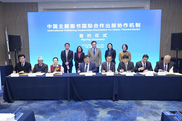 推進會上舉行了“中國主題圖書國際合作出版協作機制”擴員簽約儀式,韓國、吉爾吉斯斯坦、巴基斯坦、匈牙利、保加利亞、肯尼亞、孟加拉國、老撾、烏茲別克斯坦、泰國、阿富汗、希臘和尼泊爾等13個國家的出版機構和研究機構代表完成了簽約。