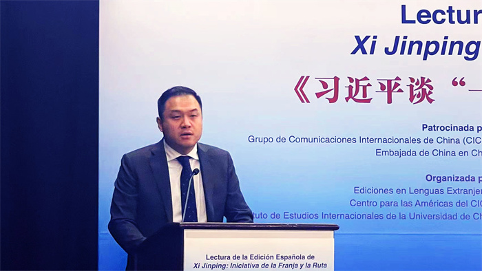 于濤指出,習近平主席提出的共建“一帶一路”倡議及其全球實踐和豐碩成果充分表明,作為一條關照人類、命運與共之路,合作共贏、共同發展之路,文明互鑒、民心相通之路,“一帶一路”倡議為人類社會發展和文明進步提供了新的路徑選擇。智利是最早表態支持“一帶一路”的拉美國家,在“一帶一路”框架下,中智兩國在港口、地鐵、公路等公共基礎設施和有關科技中心項目建設上扎實合作,推動智利加速實現經濟轉型升級,為智利人民帶來了實實在在的福祉。希望通過《習近平談“一帶一路”》西文版的出版發行和深入推介,可以幫助智利及拉美地區廣大讀者更好讀懂“一帶一路”倡議和人類命運共同體理念,助力共建“一帶一路”高質量國際合作,同時持續增進中智、中拉文明互鑒和友好情誼。