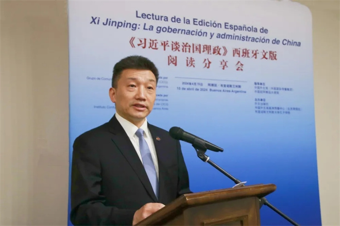王衛表示,中阿友好合作有著堅實的基礎,兩國社會各界對加強交流有著極高的熱情?!读暯秸勚螄碚废到y展示了新時代中國領導人的治國理念和執政方略,讀者得以從中了解一個以人民為中心的執政黨,如何發展國家、如何與世界相處以及如何帶領人民走出一條中國式現代化道路,希望更多阿根廷讀者通過這部著作了解和讀懂新時代中國,從而進一步增進兩國人民的友誼和友好合作。