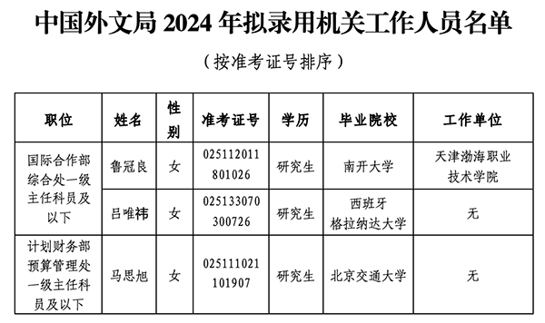 附件:中國外文局2024年擬錄用機關工作人員名單