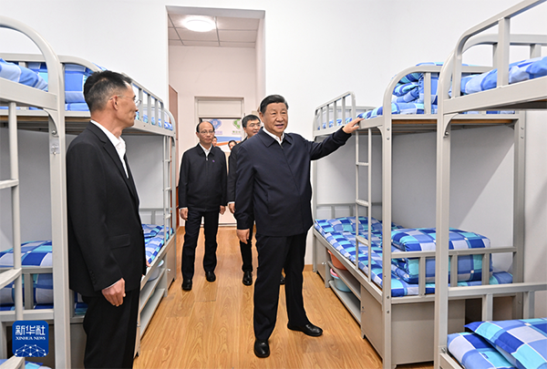 6月18日至19日,中共中央總書記、國家主席、中央軍委主席習近平在青??疾?。這是18日下午,習近平在果洛西寧民族中學宿舍樓察看學生住宿條件。(新華社記者 岳月偉 攝)