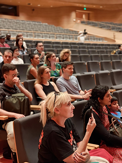 步入園區,一座設計前衛、造型獨特的建筑吸引了外籍專家們的目光,這便是以古運河糧倉為靈感設計的北京藝術中心。在中心內部,講解員詳細介紹了音樂廳、歌劇院、戲劇廳等建筑空間的構造特點與美學價值。其獨特的“化整為零”布局設計,旨在最大限度降低能耗,踐行綠色環保理念,同時與城市公共交通系統緊密相連,使三大建筑形成有機統一的整體。自開放以來,該藝術中心已成為市民享受多元藝術活動的重要場所,成為深受群眾喜愛的藝術基地和“文化糧倉”。
