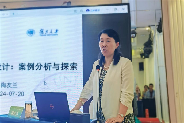 7月20日下午,復旦大學外文學院翻譯系主任、翻譯碩士(MTI)教育中心主任,全國翻譯專業學位研究生教育指導委員會委員陶友蘭圍繞“MTI畢業論文設計:案例分析與探索”授課。課程從MTI 畢業論文寫作現狀及問題出發,探索翻譯學界、譯界與業界對畢業論文的要求,結合優秀翻譯實踐報告分析案例闡述寫作思路,并指出在選題、寫作和論證過程中需注意的要素,提出可行的課程建議及教學管理方案。