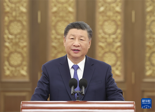 9月23日,黨和國家領導人習近平、李強、趙樂際、王滬寧、蔡奇、丁薛祥、李希等在人民大會堂接見探月工程嫦娥六號任務參研參試人員代表并參觀月球樣品和探月工程成果展覽。這是習近平發表重要講話。(新華社記者 鞠鵬 攝)