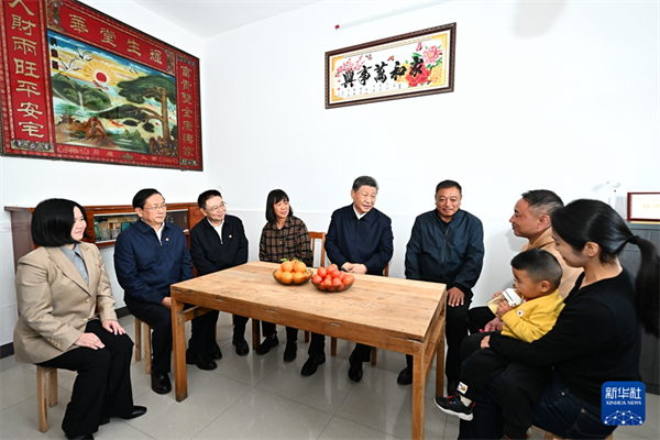 在村民熊成龍家,習近平仔細察看家居生活,同一家人圍坐在一起,了解生產、孩子就業創業、家庭收入、養老醫療等情況。聽說這些年城鄉基本公共服務體系不斷健全,農民物質文化生活越來越有保障,習近平很高興。他希望一家人繼續努力,把生產、生活搞得更好,把孩子培養好,讓好日子越過越紅火。