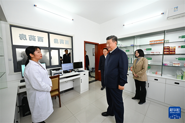 11月4日至6日,中共中央總書記、國家主席、中央軍委主席習近平在湖北考察。這是5日上午,習近平在咸寧市嘉魚縣潘家灣鎮四邑村衛生室考察。(新華社記者 燕雁 攝)
