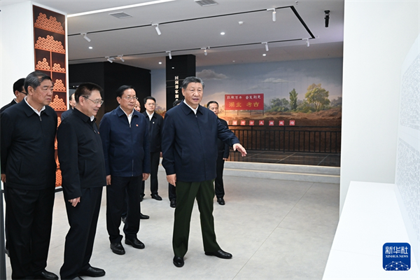 11月4日至6日,中共中央總書記、國家主席、中央軍委主席習近平在湖北考察。這是4日下午,習近平在孝感市云夢縣博物館考察。(新華社記者 燕雁 攝)