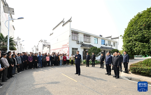 11月4日至6日,中共中央總書記、國家主席、中央軍委主席習近平在湖北考察。這是5日上午,習近平在咸寧市嘉魚縣潘家灣鎮四邑村考察時,同村民們親切交流。(新華社記者 謝環馳 攝)