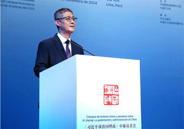 中國駐秘魯大使宋揚在致辭中說,在中秘雙方共同努力下,中秘經貿合作碩果累累。中國已連續十年成為秘魯最大貿易伙伴和最主要出口目的地,秘魯成為中國在拉美的第四大貿易伙伴和第二大投資對象國。從秘魯國家領導人到學習中文的秘魯青年,不同年齡、不同界別、不同階層的秘魯讀者因為《習近平談治國理政》這部著作了解研學習近平主席的重要思想,閱讀感知中國式現代化的發展脈搏。通過這部著作,讀者可以充分讀懂中國堅持綠色發展的目標,可以全面感知中國堅持廉潔合作發展的態度,可以深刻領悟共同發展一個都不能少的決心。希望通過習近平主席重要著作的廣泛發行和傳播,讓秘魯讀者和民眾更好地讀懂中國,讓中秘古老文明間天然的親近感和兩國人民兄弟般的親切感轉化為互利共贏的強大動力,將兩國的各領域友好合作推向更高水平。