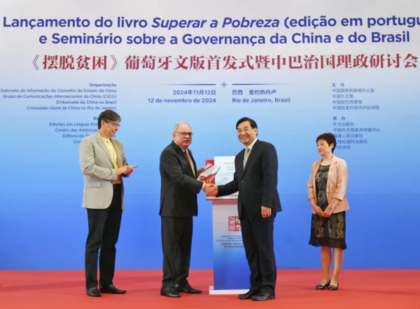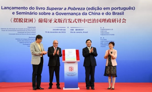 當地時間11月12日,在習近平主席即將赴里約熱內盧出席二十國集團領導人第十九次峰會并對巴西進行國事訪問前夕,《擺脫貧困》葡萄牙文版首發式暨中巴治國理政研討會在巴西里約熱內盧舉行。