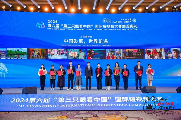 12月19日,2024第六屆“第三只眼看中國”國際短視頻大賽頒獎典禮系列活動在黑龍江哈爾濱舉辦。第十四屆全國政協常委、中國外文局局長杜占元,黑龍江省委常委、宣傳部部長何良軍出席活動并致辭,哈爾濱市委常委、宣傳部部長蘭峰,以及中外創作者、評委專家、相關?。▍^、市)宣傳部代表、企業代表等近300人參加活動。