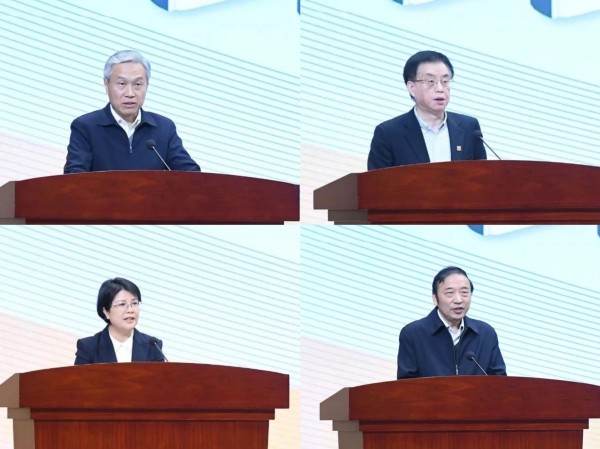 于濤、宋強太、胡開敏、張志方向鐵路12306科創中心職工代表贈送新書。