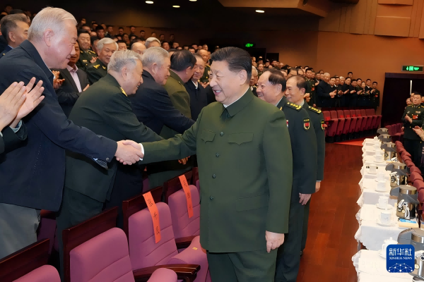 下午4時許,習近平來到老同志中間,全場響起熱烈掌聲。習近平同大家親切握手、互致問候,關切詢問他們的身體和生活情況,共同回顧過去一年黨、國家和軍隊事業走過的不平凡歷程、取得的重大成就。老同志們一致表示,要更加緊密地團結在以習近平同志為核心的黨中央周圍,堅持以習近平新時代中國特色社會主義思想為指導,深入貫徹習近平強軍思想,深刻領悟“兩個確立”的決定性意義,堅決做到“兩個維護”,貫徹軍委主席負責制,弘揚光榮傳統、永葆政治本色,堅定信心、團結奮斗,繼續為打好實現建軍一百年奮斗目標攻堅戰,為以中國式現代化全面推進強國建設、民族復興偉業作出積極貢獻。