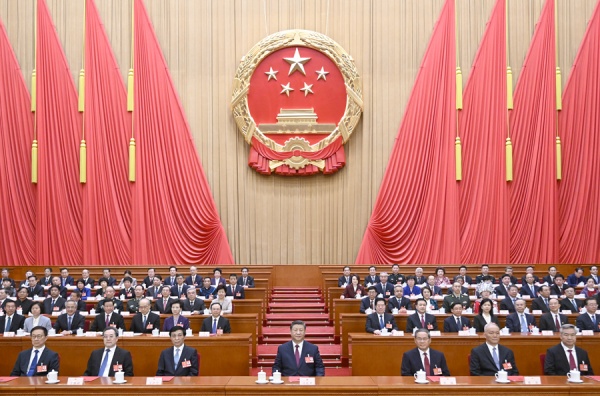 3月11日下午,第十四屆全國人民代表大會第三次會議在北京人民大會堂閉幕。黨和國家領導人習近平、李強、王滬寧、蔡奇、丁薛祥、李希、韓正等在主席臺就座。(新華社記者 李學仁 攝)