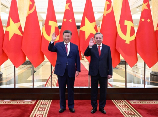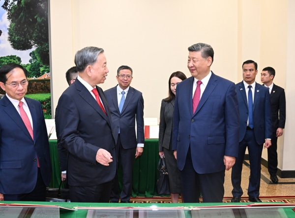 習近平強調,今年是中越建交75周年暨“中越人文交流年”。75年來,無論國際風云如何變化,雙方在爭取國家獨立和民族解放的斗爭中相互支持,在社會主義建設事業中攜手并進,在推進各自現代化進程中砥礪前行,成為社會主義國家團結合作的典范。面對變亂交織的國際形勢,中越兩國堅持和平發展,深化友好合作,為世界帶來了寶貴的穩定性和確定性。站在新的歷史起點上,雙方要繼往開來、攜手前行,賡續“越中情誼深、同志加兄弟”的傳統友誼,按照政治互信更高、安全合作更實、務實合作更深、民意基礎更牢、多邊協調配合更緊、分歧管控解決更好的“六個更”總體目標,高質量推動全面戰略合作,確保中越命運共同體建設行穩致遠,為構建人類命運共同體作出新的更大貢獻。