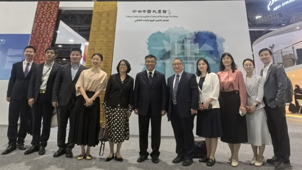 劉大為巡視“今日中國非遺館”并與工作人員合影