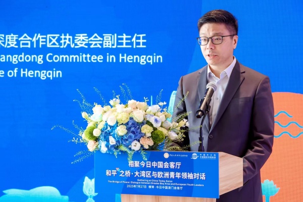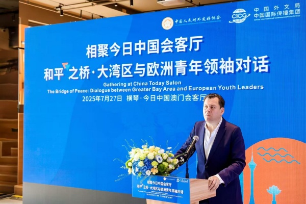 世界青年和平大會前夕,7月27日,相聚今日中國會客廳——和平之橋·大灣區與歐洲青年領袖對話活動在廣東橫琴粵澳深度合作區舉辦。
