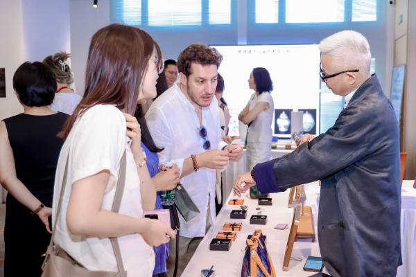 活動現場,今日中國澳門會客廳還專門設了小型非遺展覽,邀請了鐘家窯第四代傳承人、青花花鳥非遺傳承人鐘志偉,景德鎮市緣源陶瓷有限公司副總經理王季平,武漢理工大學藝術與設計學院博士生導師、陶瓷藝術設計大師龔余輝,濮綢非遺傳承人代表戴金海,景泰藍工藝畫大師李偉平,紫禁城文化科技有限公司(阿聯酋)CEO楊苑分享了非遺傳承發展和對外交流的故事。