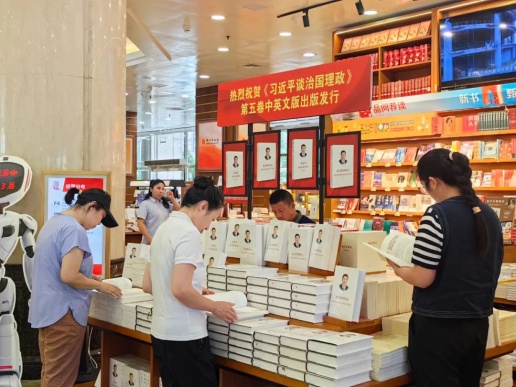 以下為《習近平談治國理政》第五卷中英文版圖書在北京、廣東、浙江、福建、四川、西藏、香港、澳門主要書店上架銷售及讀者閱讀的場面。