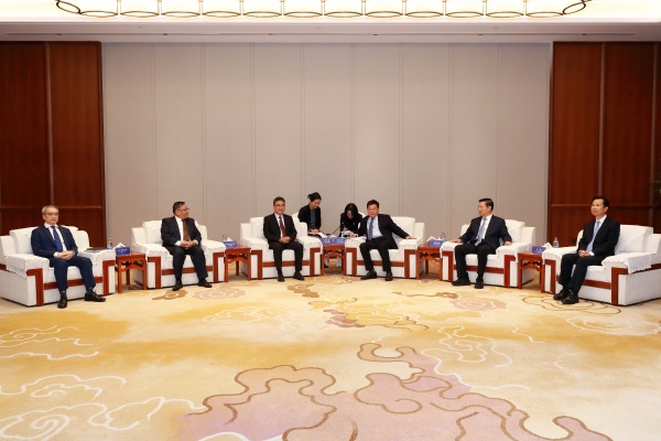 5月25日,第十四屆全國政協常委、中國外文局局長杜占元,中國公共關系協會會長、國務院新聞辦公室原副主任郭衛民,河南省人大常委會黨組副書記、副主任、洛陽市委書記江凌在河南洛陽會見出席2025中國—東盟媒體合作論壇的柬埔寨新聞部國務秘書肯·顧納瓦,越南文化、體育和旅游部副部長潘心,中國—東盟中心秘書長史忠俊以及來自東盟國家的駐華使節和主流媒體代表。