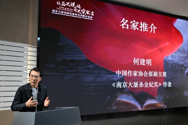 何建明分享了他創作《南京大屠殺全紀實》一書的背景、過程和感受。這本書以中國視角系統揭露了日軍暴行,還被翻譯成英語、日語、泰語、韓語、越南語、馬來西亞語等文版。何建明表示,只有真正深入地了解南京大屠殺的史實,才能更加認識到今天仍要銘記歷史的意義。如今的世界并不安寧,世界上和平的聲音還不夠多,中國是一個和平崛起的國家,我們有責任、有義務承擔起這個使命。